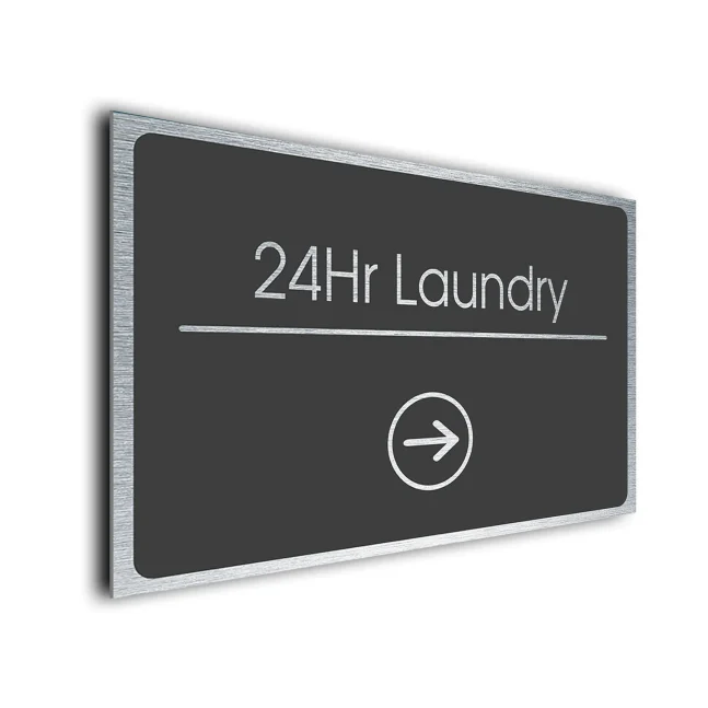 24Hr Laundry Sign Directional Sign – Modern Office Wall Sign, Full Color UV Print, Weatherproof Aluminum Composite, Brushed Metal Finish